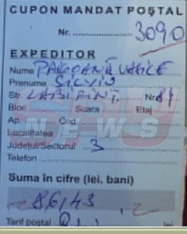 Vineri, Bahmuţeanca a mai primit o "veste" din partea soţului, prin intermediul poştaşului care a venit să le aducă micuţilor pensia alimentară. Suma modică plătită de afacerist fiilor lui a lăsat-o fără cuvinte pe soacra lui.
