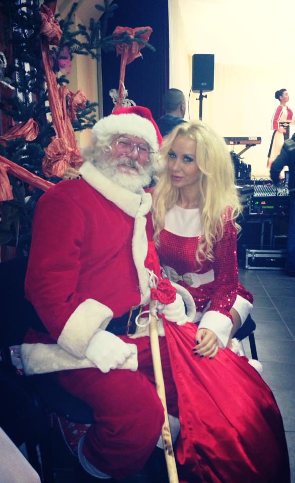 E blondă, voluptuoasă şi, mai nou, Crăciuniţă. Cum era de aşteptat, Simonca Traşcă n-a renunţat la rochiile extrem de scurte nici când a stat în braţe la Moş Crăciun.