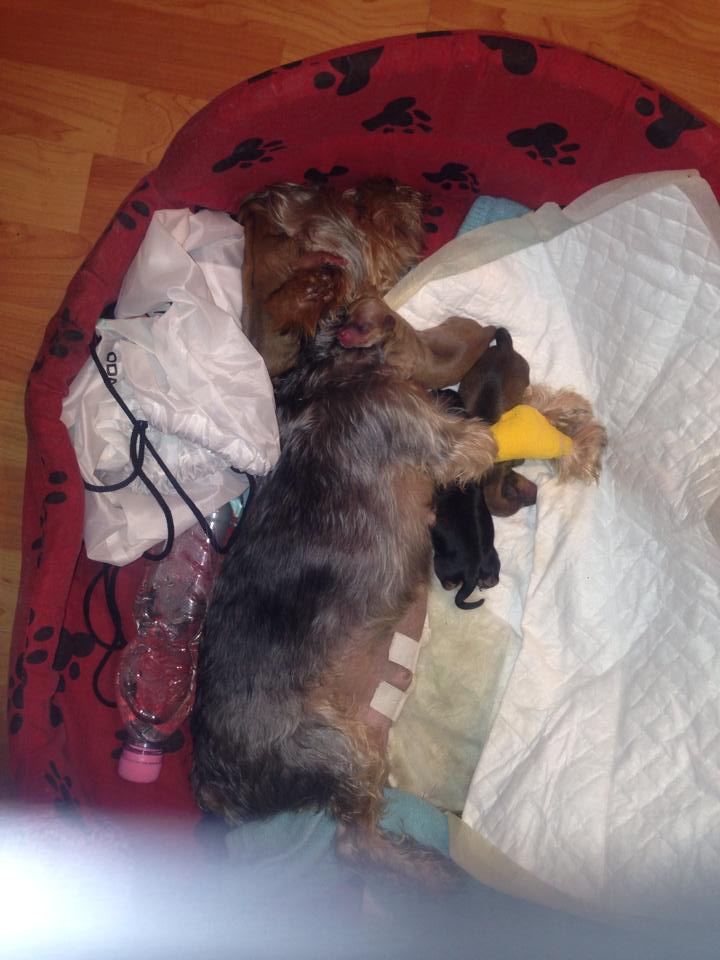 Daniela Crudu este tare tristă, căţeluşa ei, Perla, a fătat, însă acum are probleme grave. Aceasta a fost operată de două ori şi nu-şi poate hrăni puiuţii.