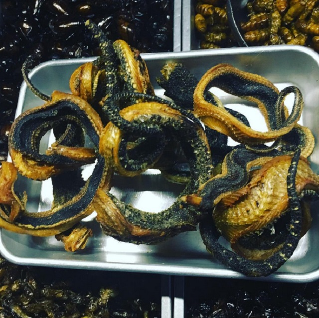 Aceasta și-a postat câteva fotografii din capitala Thailandei, respectiv niște lăcuste și niște șerpi, pe care locuitorii îi mănâncă în mod obișnuit.