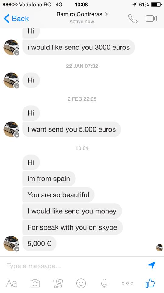 "Nici nu trebuie pus pret pe acest lucru. Eu am pus fotografia pe internet pentru a mă amuza. Nu am fost curioasă cine este, nu m-am uitat la profilul lui şi i-am dat block. Mi se pare lipsă de respect atunci când abordezi aşa o femeie şi vrei să îi dai bani", a spus Denisa Nechifor la Antena Stars.
