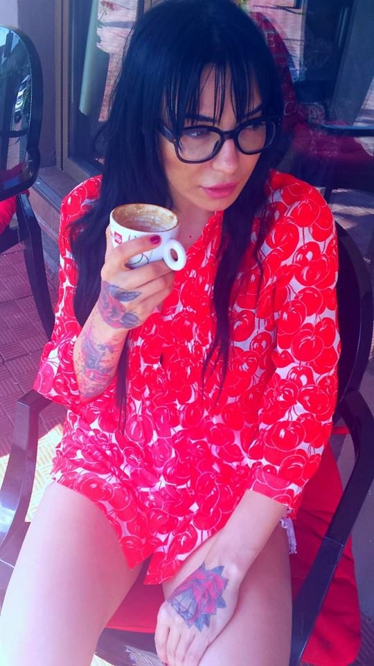 Îmbrăcată doar într-o cămaşă roşie, vedeta şi-a depărtat picioarele, lăsând la latitudinea prietenilor virtuali să-şi dea seama dacă poartă sau nu lenjerie intimă.