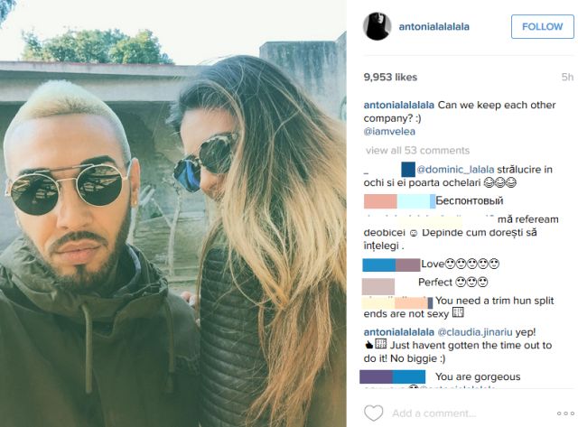 Oriunde s-ar afla, artiştii emană dragoste prin fiecare postare pe reţelele de socializare. În urmă cu puţin timp, Antonia a publicat o fotografie care dovedeşte cât de mult il adoră pe Alex Velea, iar fanii au recompensat imaginea cu aproape 10.000 de like-uri.