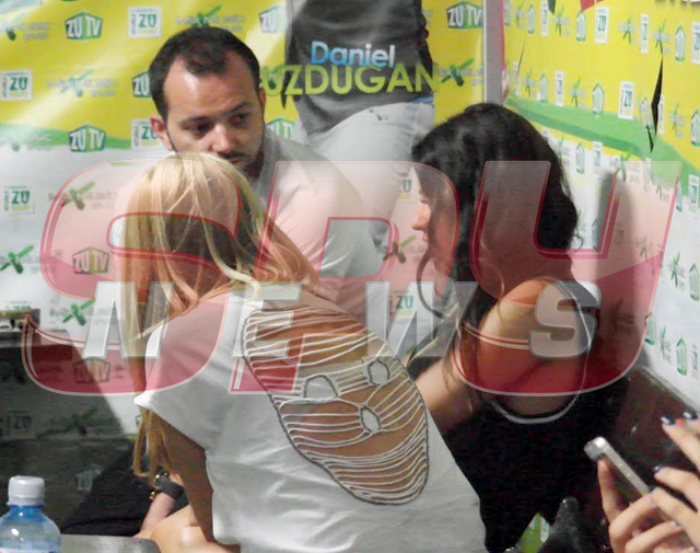 Alături de ea, Mihai Morar, prezentatorul festivalului muzical, vizibil încurcat, cu o figură serioasă, chiar încruntată, încerca să o liniștească pe vedetă,