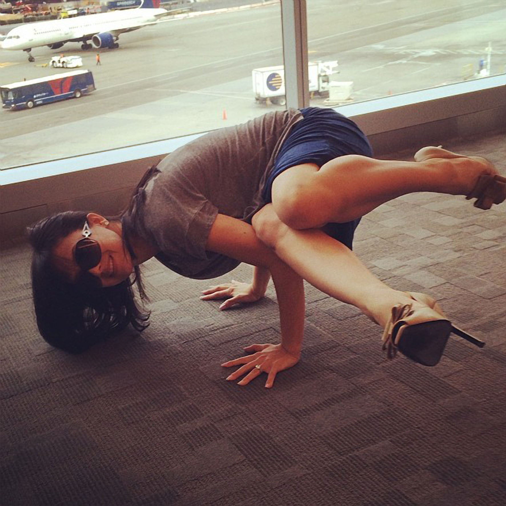 Se pare că yoga e omniprezentă în viaţa Hilariei. Fie că face pe gospodina, fie că e îmbrăcată office şi se află într-un aeroport, vedeta nu renunţă la mişcările provocatoare. Hmm, acum înţelegem de ce arată atât de bine, cu toate că nu mai are 20 de ani.