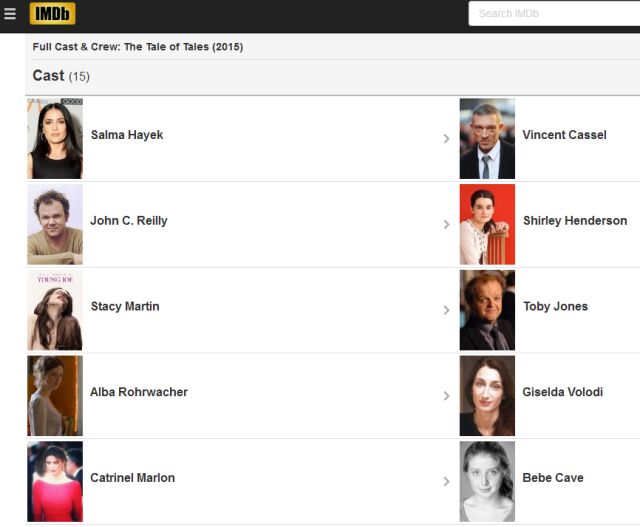 Chiar dacă nu este străină de platoul de filmare - ca actriţă, Catrinel a apărut în serialul CSI Crime şi Investigaţii şi a avut câteva roluri în filme artistice -, de data aceasta emoţiile au copleşit-o. Nici ea nu se aştepta să fie distribuită în acest proiect cinematografic. „The Tale of Tales” este o compilaţie de poveşti şi va avea premiera în cinematografe în 2015.