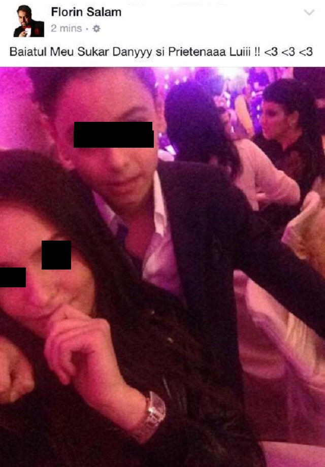 "Băiatul meu şucar, Dani, şi prietena lui", este mesajul care însoţeşte imaginea postată de Florin Salam pe o reţea de socializare.