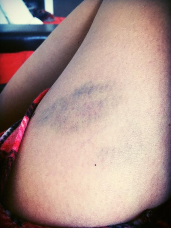 Fosta starletă s-a ales cu o vânătaie foarte mare la picioarul stâng, în ciuda faptului că imediat și-a pus gheață pe lovitură!
