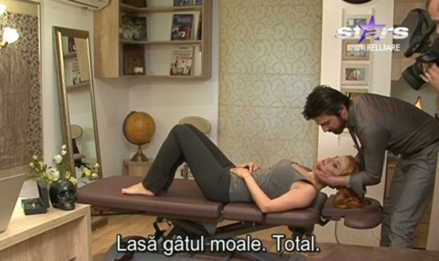 "Şi dacă tot am ajuns aici, trebuie să profit şi eu de situţie şi îl voi ruga pe profesionistul Tuncay Ozturk să îmi spună şi mie de ce mă doare spatele. Bine se şi ştie, am avut o sarcină, am şi alăptat, şi profit de ocazie şi o să încerc să îmi rezolve şi mie problema," a spus prezentatoare la emisiunea "Refresh by Oana Turcu", de la Antena Stars.