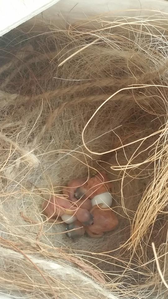 "Căsuţa nouă pentru cintezele noastre şi bucuria a 6 puişori născuţi acum 3 zile. Le-am lăsat astăzi pe cele mari să zboare libere (facem asta des, dar vin apoi la căsuţa lor unde sunt foarte atent îngrijite), sunt o încântare!
