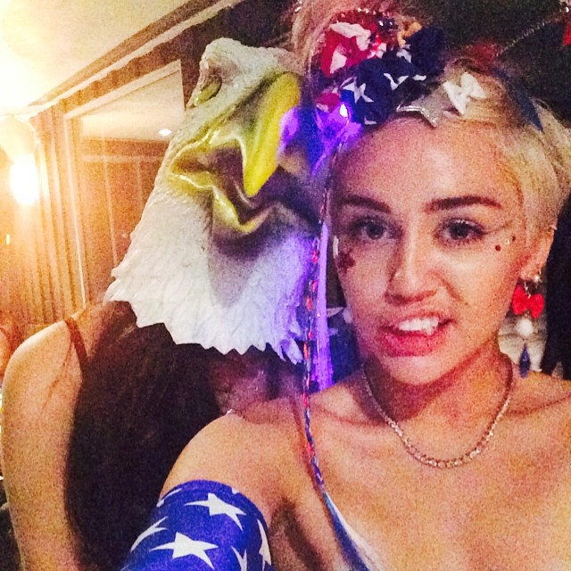 Se pare că distracţiei lui Miley i s-a alăturat şi Wayne Cone, care a îmbrăcat un costum imprimat cu steagul SUA.