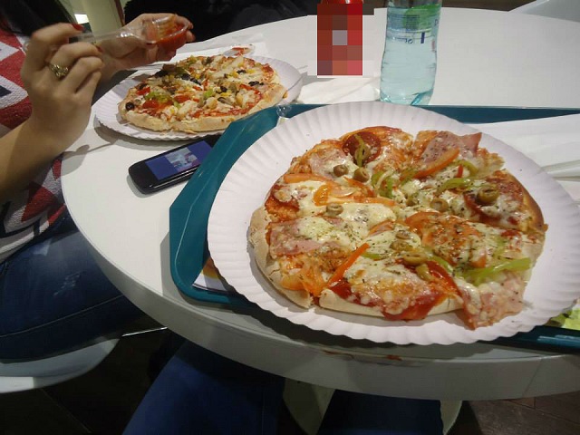 Îmbrăcaţi lejer, Mariana şi Grigore au mers la mall, unde s-au răsfăţat cu câte o pizza. Se pare că cei doi îndrăgostiţi s-au săturat de bucatele tradiţionale şi au decis să-şi facă pofta, după care au mers la un film.