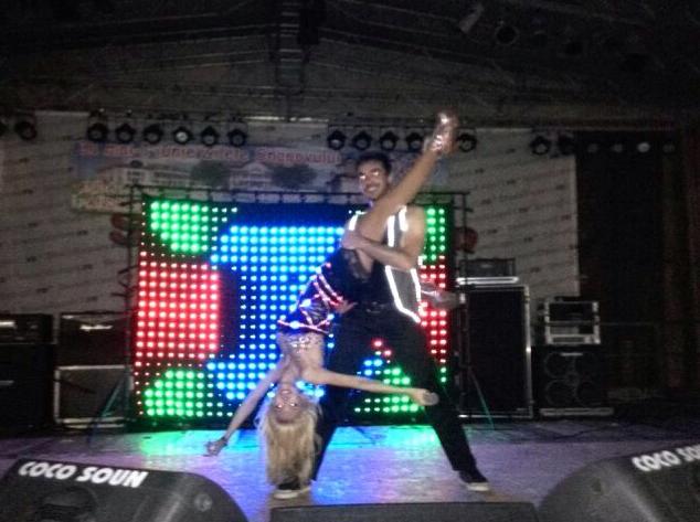 Extenuată după o zi plină de concerte, Andreea Bălan s-a "odihnit" câteva clipe cu capul în jos, în braţele coregrafului Petrişor Ruge.