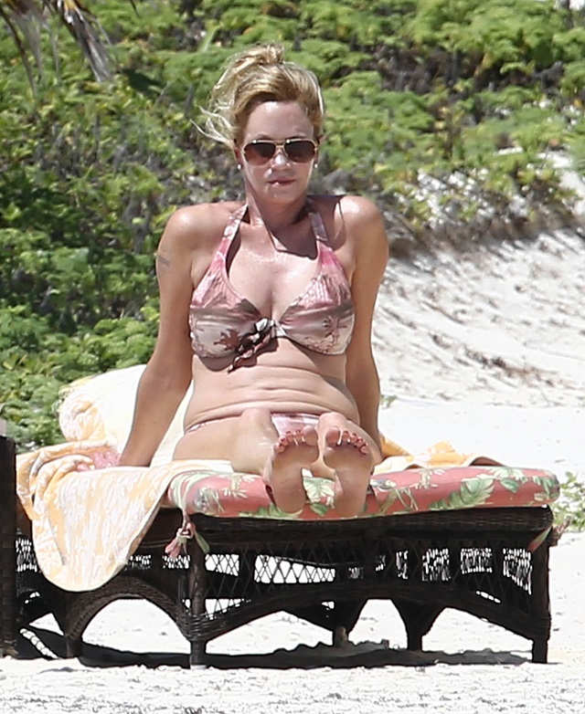 Nu doar fizicul actriţei a atras atenţia presei de tabloid, cât şi compania actriţei, din timpul vacanţei. Melanie Griffith a fost însoţită la plajă de Dakota Johnson, fiica ei şi totodată actriţa care a primit rolul principal în controversatul film "50 Shades of Grey" şi Kris Jenner, mama surorilor Kardashian.
