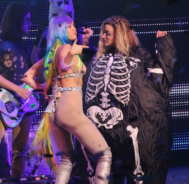 Miley Cyrus a cântat pe scena din Vancouver, Canada, cu sânii descoperiţi şi cu un costum care imita foarte bine o "păsărică" adevărată. Cântăreaţa a apărut cu părul multicolor şi a reuşit să atragă atenţia cu ţinuta ei, dar şi cu atingerile în locuri "interzise". Miley Cyrus este dezinhibată total, chiar dacă are celulită pe picioare şi pe coapse.