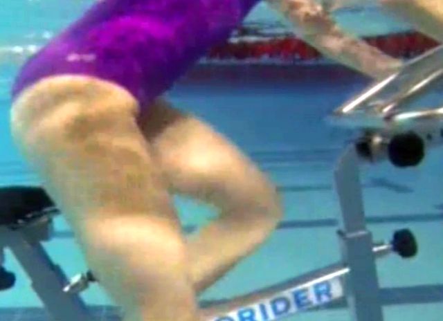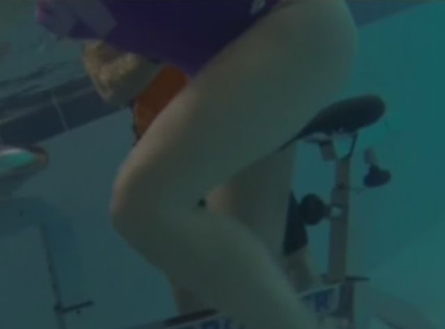Spre deosebire de alte vedete, care se înghesuie la sala de fitness, şatena a ales să facă să un sport foarte puţin cunoscut în România şi anume mersul pe bicicletă în piscină.