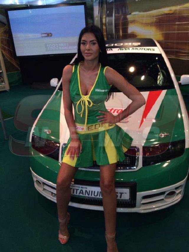 Evident, apariția brunetei lângă mașină nu a trecut neobservată de sutele de bărbați veniți să admire bijuteriile pe patru roți, dar, după ce au văzut-o pe frumoasa asistentă de la Star Matinalul Antenei Stars au uitat de tot ce înseamnă motor, capi-putere sau alte dracii legate de mecanică și automobile.