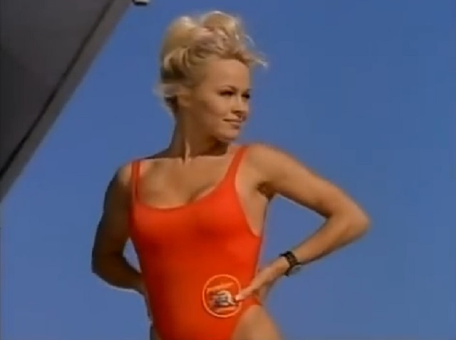 Pamela Anderson a făcut furori în celebrul "Baywatch" cu un costum roşu , pozând în poziţii asemănătoare cu ale Innei.