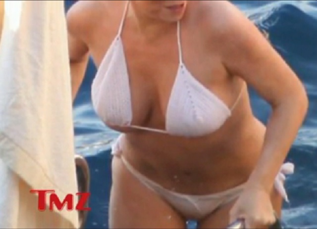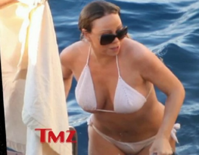 Într-un costum de baie alb, cu sânii pe afară, Mariah Carey e departe de forma fizică din tinereţe!