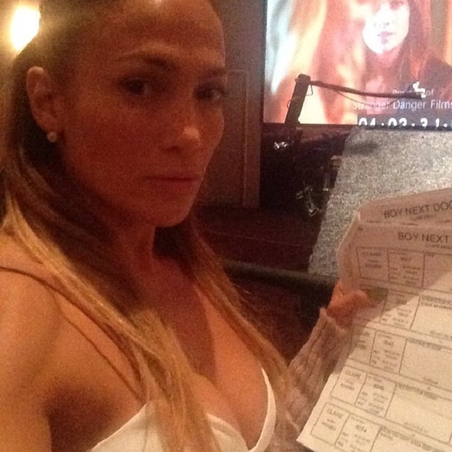 Jennifer Lopez (45 ani) repetă pentru rolul pe care îl va avea în filmul "The Boy Next Door", film ce fanii abia aşteaptă să-l vadă. Artista le-a arătat prietenilor virtuali o poză demenţială şi le-a atras atenţia tuturor cu bustul generos.