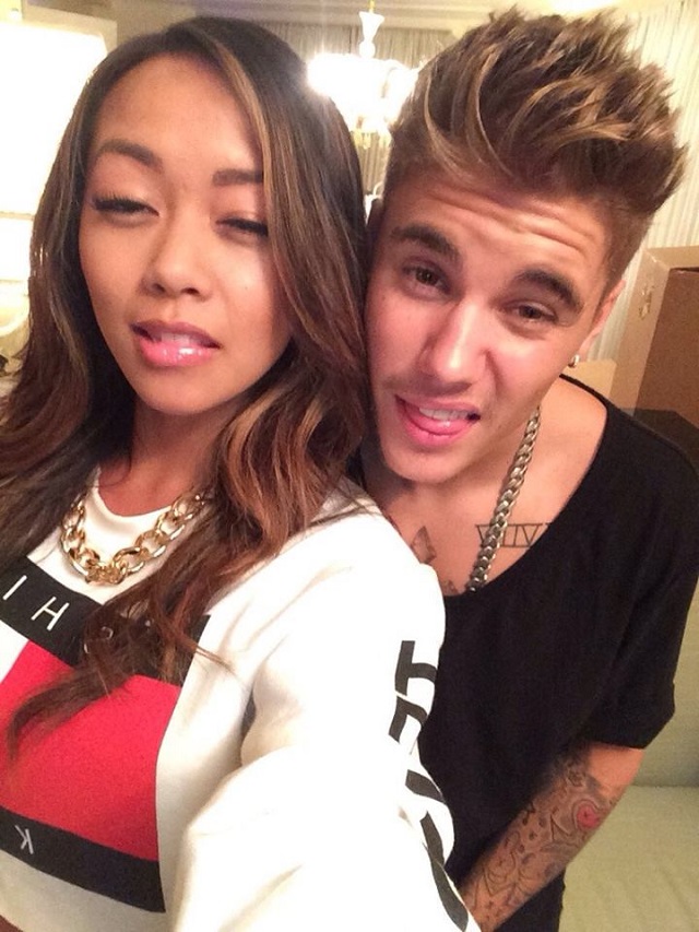 Elena Gheorghe apare într-o fotografie de tip selfie alături de cântăreţul canadian, în care ea zâmbeşte, iar el scoate limba.