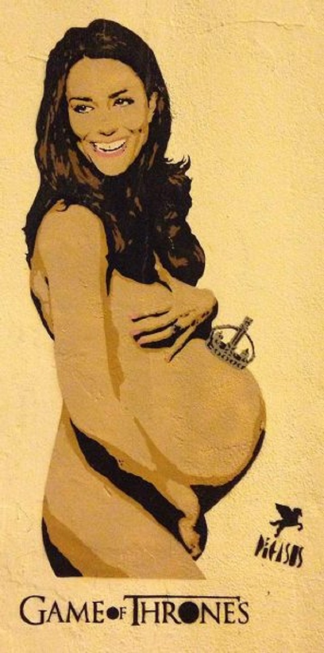 Kate Middleton, însărcinată şi goală pe un perete din Londra