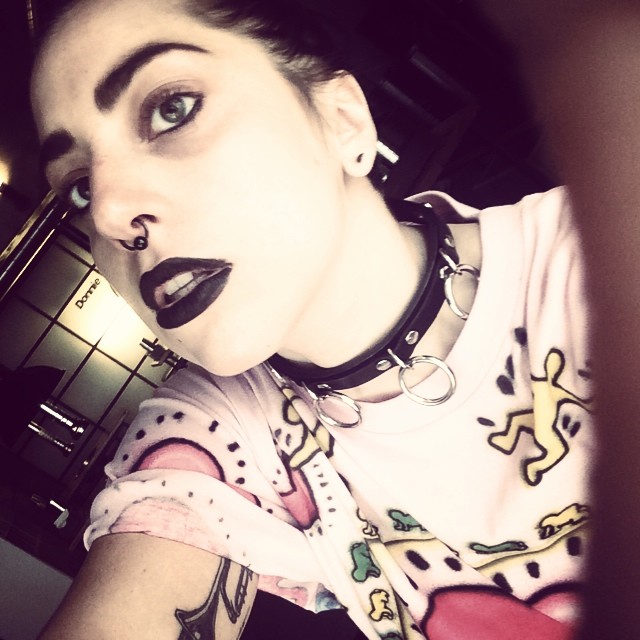 Lady Gaga şi-a schimbat şi piercingul din nas, alegând unul tot închis la culoare. Pentru ca look-ul să fie complet şi în ton cu tema, Lady Gaga l-a accesorizat un colier ce pare mai degrabă o zgardă.