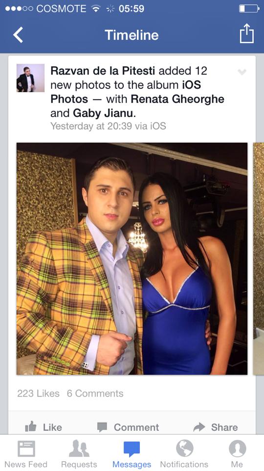 "Pentru Renata Gheorghe, fosta mea iubita ! Si tu si mama ta m-ati mintit ! Cand mama ta îmi dădea mesaj k esti cu ea uitatate la postarea de la Răzvan la ce ora a fost postata si la ce ora mi-a dat mama ta mesaj k esti cu ea ! Dana mi-a dat mesaj la 20.50 si mia zis k esti cu ea ! Ai ales sa ma minti ca sa filmezi un clip de manele! Pt. k ma-ti mintit amândouă tu cu mine ai terminat-o ! Te rog PÂNA luni sa-ti iei bagajul si viaaaa Pitești ! Multumesc pt. înțelegere si succes in activitatatea de dansatoare !", a scris Leo pe contul său de socializare, unde a pus imaginea care a dat în vileag totul.