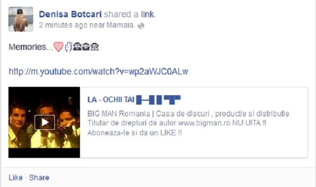 Frumoasa blondă a aruncat şi o bombă: a spus că i-a gătit şi lui Adi Cristea cândva, cu toate că, în ultima vreme, presa a speculat că ea l-ar fi lăsat pe fotbalist şi ar fi început o relaţie cu Liviu Vârciu. Un detaliu, însă, a trădat-o. Pe fundal se auzea melodia "Ochii tăi", a formaţiei L.A. în care a activat, demult, Vârciu, iar Denisa a început să plângă când a auzit-o. Şi-a dat repede ochelarii de soare jos şi a încercat să-şi stăpânească lacrimile. Mai mult, imediat după ce emisiunea s-a terminat, blonda a publicat, pe contul ei de Facebook, videoclipul acestei piese.