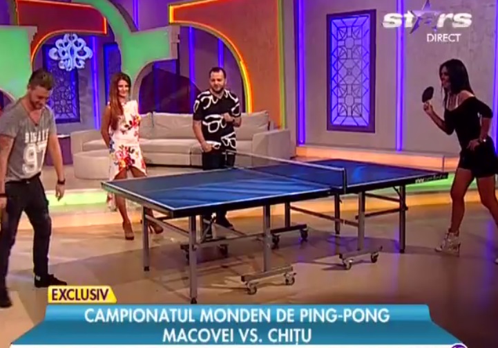 Raluca Macovei a recunoscut că nu este o amatoare a sportului şi asta s-a văzut. Focoasa brunetă a fost pur şi simplu terminată de Mihai Chiţu în cadrul "Campionatului Monden de ping-pong". Raluca Macovei a fost bătută cu 0-5 de cântăreţ. Cu toate că artistul a încercat să fie un gentleman şi să o lase pe Raluca să câştige măcar o servă, acest lucru nu a fost posibil.