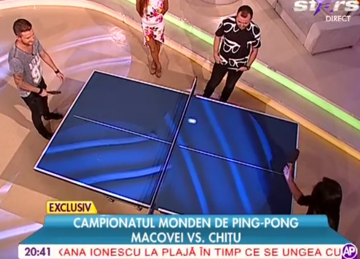Mihai Chiţu a nenorocit-o pur şi simplu pe Raluca Macovei la campionatul monden de ping-pong, competiţie lansată de emisiunea "Răi da buni".