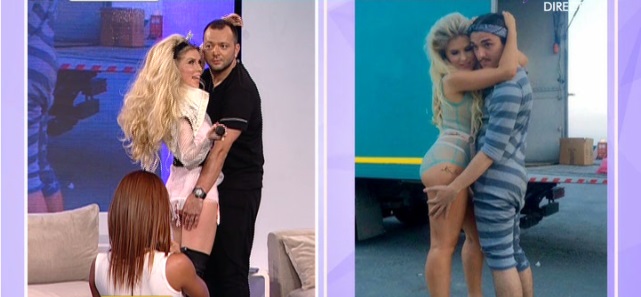 La un moment dat, cei doi au vrut să reproducă o fotografie de-a Corinei, însă atenţia celor prezenţi a fost îndreptată către un mic detaliu. Mihai Morar a atins-o pe posterior pe Corina.