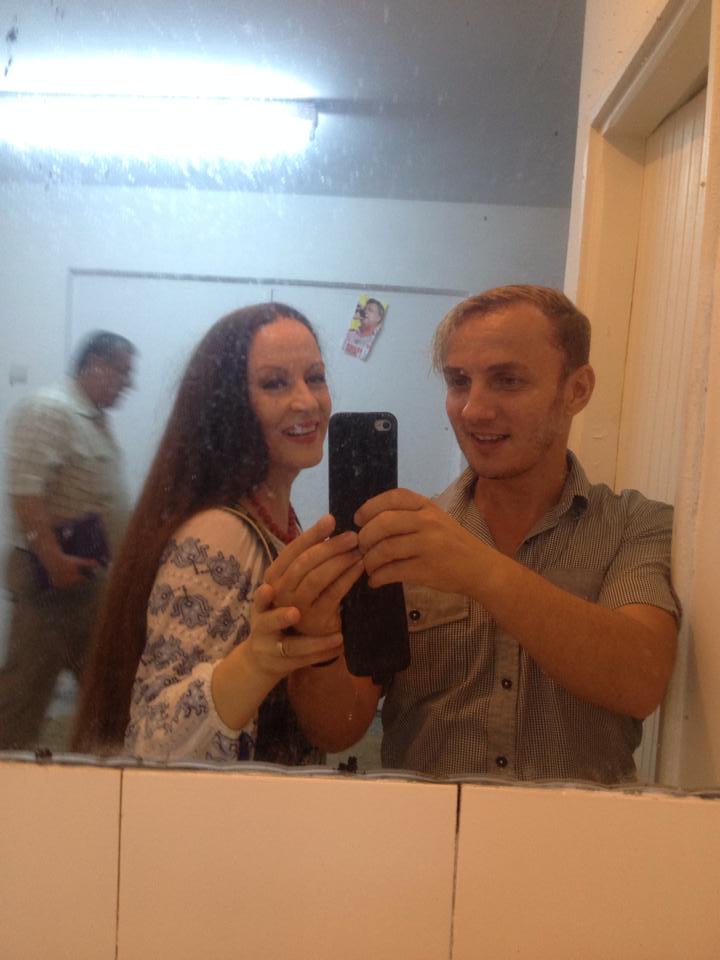 "Selfie cu Maria Dragomiroiu ! Faceți abstracţie de oglinda jegoasă! Trăim în România ! Azi avem spectacole la Saturn, Eforie Nord si Mamaia", a scris el pe Facebook.
