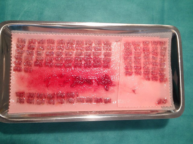Pentru că aveam peste 30 de cicatrici urâte, chiar în vârful frunții lăsate de la primul meu implant, făcut acum 10 ani și care fusese un eșec total. În consecință, s-a lucrat extrem de greu. Acele care plantează rădăcinile NU VROIAU în ruptul capului să penetreze pielea din cicatrici.