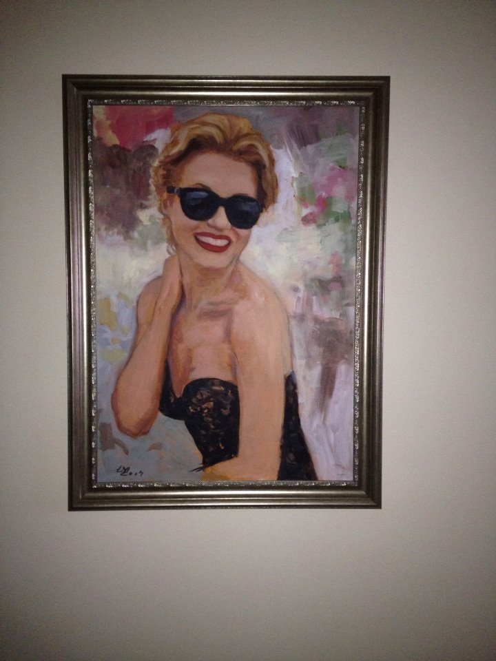 "Am primit cadou. Semănăm cât de cât?", a scris Mirela Boureanu Vaida alături de fotografia cu pricina. Tabloul este copiat după o altă fotografie a artistei şi seamănă destul de mult.
