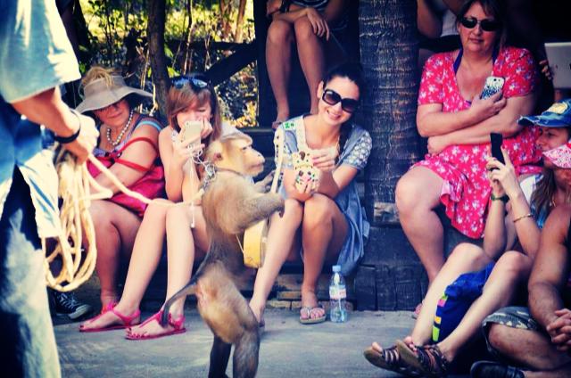 După ce s-a plimbat prin luxosul Dubai, acum frumoasa şatenă se distrează în Thailanda, mai exact în Ban Lamai. Paula a publicat o fotografie pe pagina de Facebook, în care asistă la show-ul pe care îl dă o maimuţă în stradă. Maimuţa pare sigură pe ea, iar Paula se amuză de talentul pe care îl vede la aceasta.