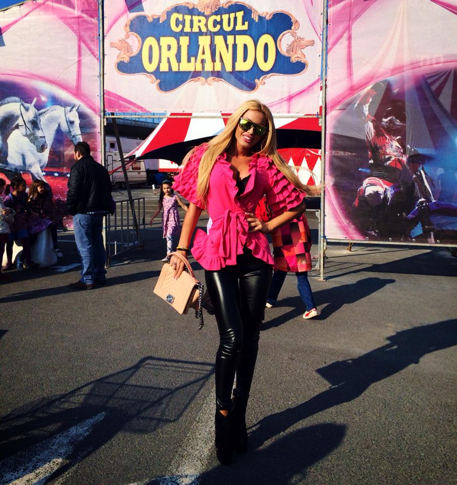 Frumoasa blondă s-a îmbrăcat cu o pereche de pantaloni negri din latex, care-i evidenţiază picioarele sexy, şi cu o bluză roz cu volane, făcându-i pe bărbaţi să întoarcă privirea după ea. "Astăzi sunt prezentă la circ! Pentru prima oară în viaţa mea!", a scris Lore, pe contul ei de socializare. A primit sute de like-uri, atât pentru distracţia de weekend, cât şi pentru ţinuta provocatoare.