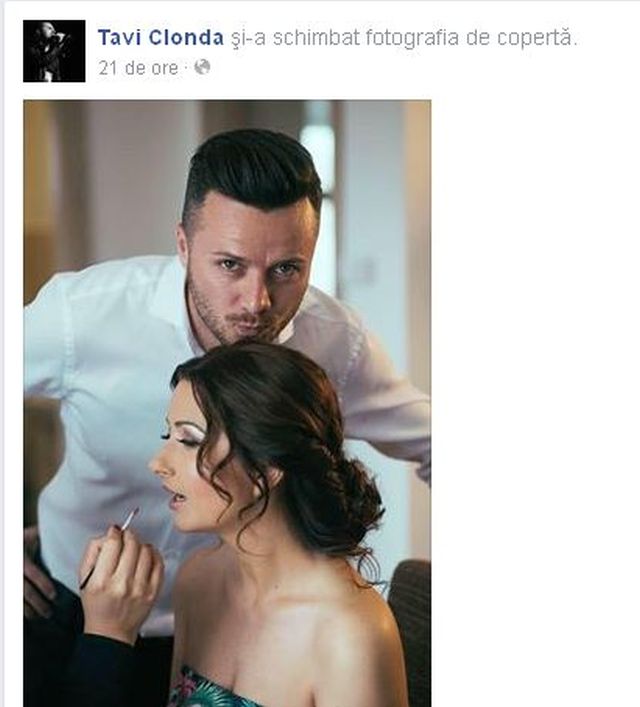 Printre modifiările făcute, vedeta de televiziune şi-a schimbat fotografia de copertă cu una din ziua cununiei civile cu Tavi Clonda. În imagine, Tavi Clonda o sărută tandru pe cap pe soţia lui.