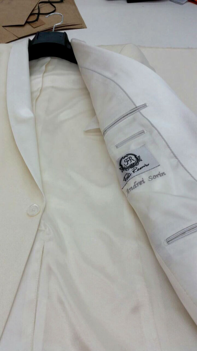 Costumul a fost finalizat, are inscripționat numele purtătorului pe buzunarul din interiorul sacoului și a fost ridicat de solistă de la reprezentanţa din România.