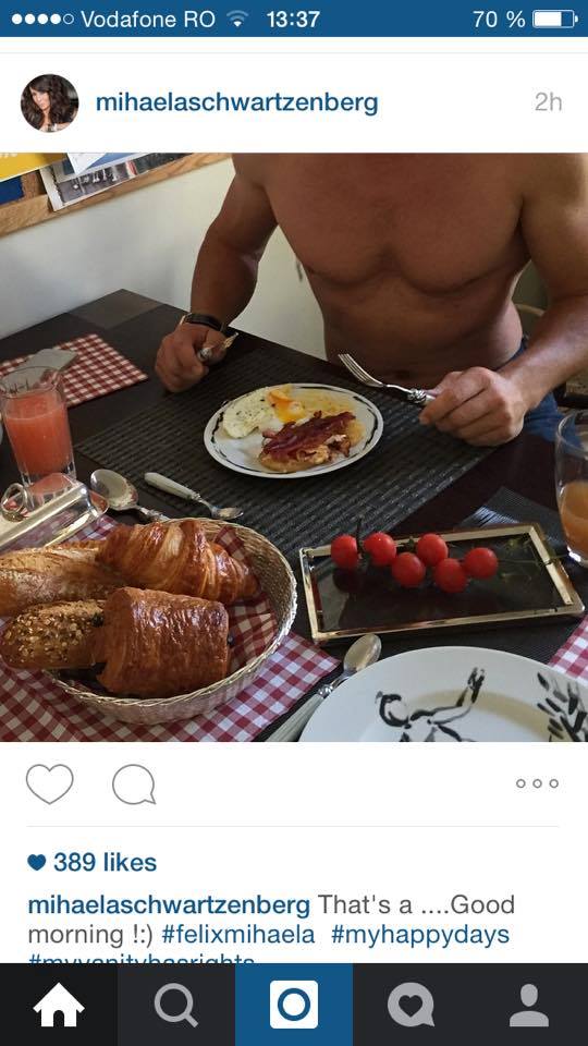 Joi dimineaţă, Mihaela Rădulescu l-a surprins pe Felix la bustul gol, în timp ce îşi serveau împreună micul-dejun. Spre deosebire de iubita lui, care preferă ouăle tari, Felix le serveşte prăjite, alături de o bucată de bacon.