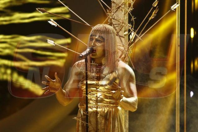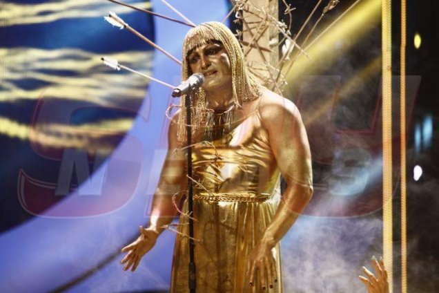 Pentru acest rol, pe care îl consideră cea mai mare provocare vocală a sa de până acum de la “Te cunosc de undeva!”, Pepe a fost acoperit pe tot corpul cu un strat de pulbere aurie. Ba mai mult decât atât, a purtat o perucă din lanțuri, care cântărea aproape cinci kilograme. “Am stat cu ea pe cap vreo șase ore. A doua zi, avem febră musculară în zona cefei”, povestește Pepe. De asemenea, artistul a avut nevoie de multă insistență, ca să-și dea jos pudra aurie de pe corp. “Am făcut vreo patru dușuri în seara aia. Și a doua zi dimineață, când am intrat la duș, tot mai “curgea” pudră aurie de pe mine”, povestește Pepe, amuzându-se.