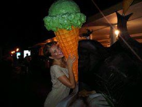 Pentru că vara nu vrea să-şi facă bagajul, iar căldura îşi desfăşoară activitatea la cote înalte, Gina Pistol a găsit o metodă inedită pentru a se răcori, măcar pentru un timp. Prin pelerinajul pe care l-a avut în ultima perioadă, Gina a dat peste o îngheţată uriaşă care i-a trezit instantaneu pofta. A încercat blonda să o ţină în braţe, dar se pare că acest lucru nu l-a putut face pentru prea mult timp datorită dimensiunilor imense pe care le avea, aşa că a apelat la un suport artificial.