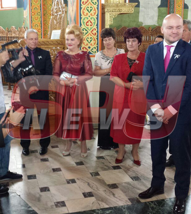 Maria Cârneci a făcut senzaţie cu rochia roşie, luată de la o celebră casă de modă din Capitală. Soţul ei a purtat un costum elegant.