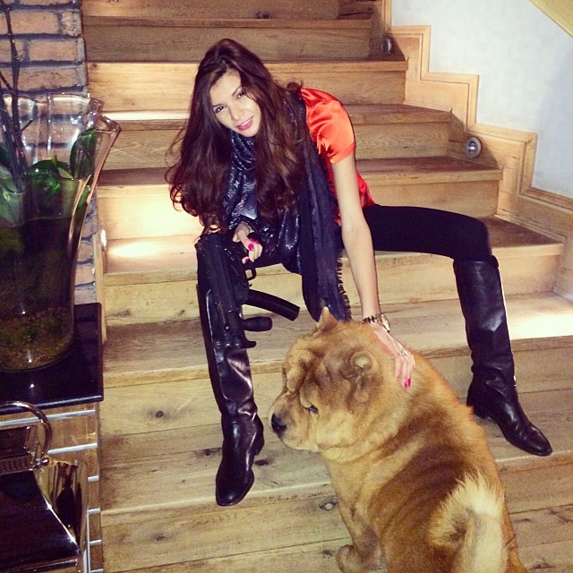 Ahmad i-a achiziţionat o armă Ramonei şi şi-a instruit şi câinele s-o protejeze de orice pericol pe brunetă, deoarecenu vrea să păţească ceva. Vedeta a publict câteva poze pe contul de Instagram în care apare în casa iubitului ei, cu o armă în mână şi cu câinele care o păzeşte. "Protejată complet. Căţelul e un scump care mă iubeşte tare mult", a scris ea pe internet.
