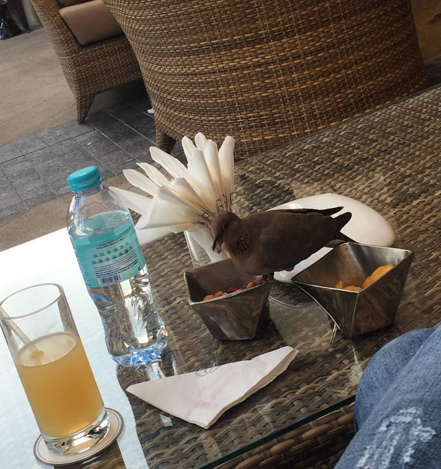 Sora Monicăi a postat pe o reţea de socializare o fotografie în care este surprinsă o pasăre care se înfruptă liniştită din bolul cu alune.