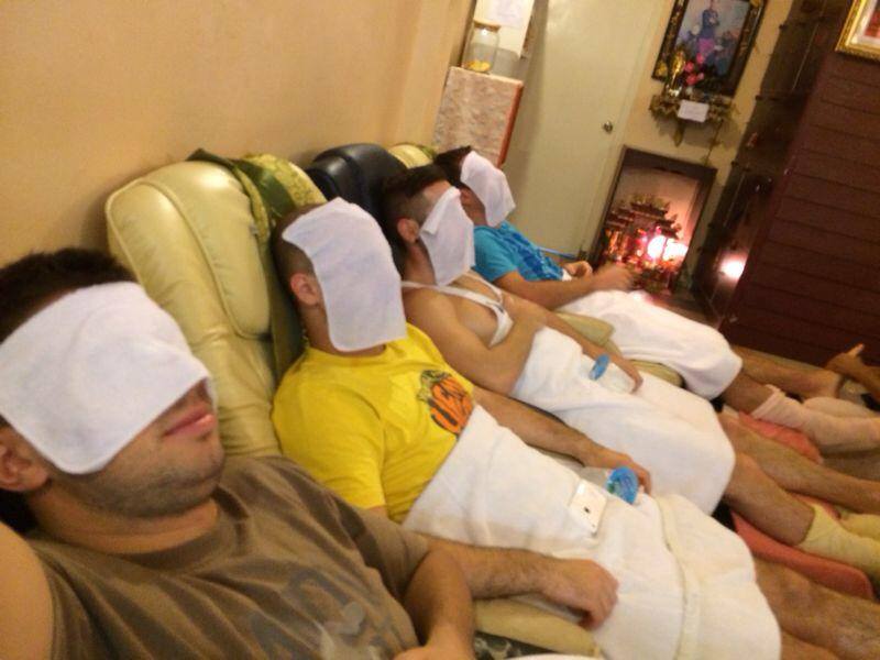 Randi şi-a făcut prietenii celebri, pozându-i într-un salon de masaj thailandez. Băieţii stau întinşi pe spate, cu un prosop ce le acoperă zona intimă şi cu o altă bucată de material plasată pe ochi. Ce urmează să se întâmple le va provoca cu siguranţă plăcere. Voi ce spuneţi?