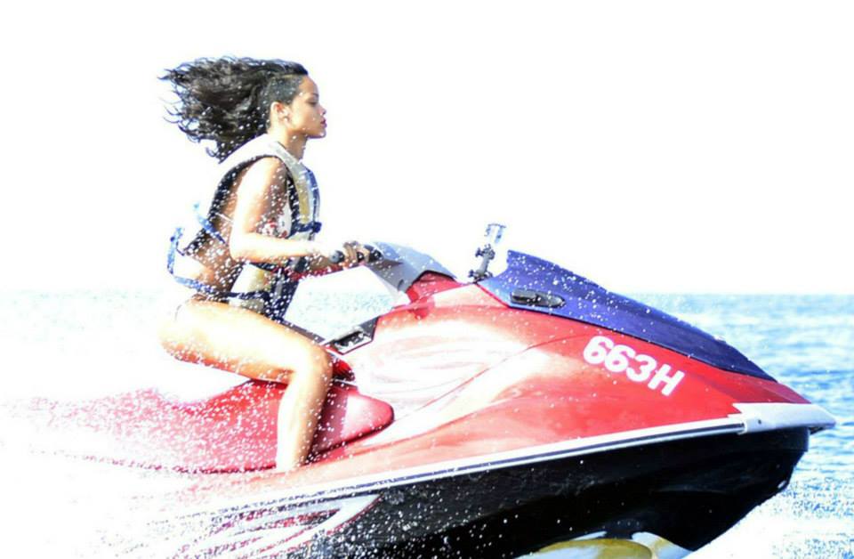 Rihanna s-a comportat absolul normal, s-a bucurat de vremea de afară pentru a face... ce face orice persoană normală, însă inevitabil ea a fost atracţia zilei.