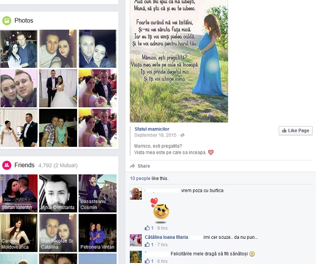 O prietenă virtuală a rugat-o să pună poze cu burtica, iar Cătălina i-a răspuns imediat: ”Îmi cer scuze, dar nu pun”, dând de înțeles că îi va dărui lui Nicolae un copil.