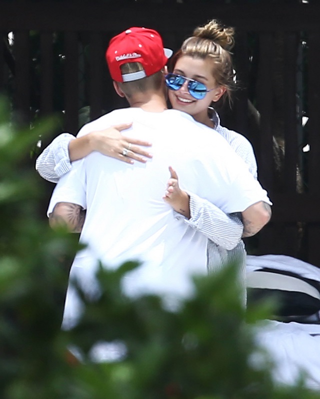 Tânăra l-a îmbrăţişat cu drag pe Bieber la venire, afişând un zâmbet larg.