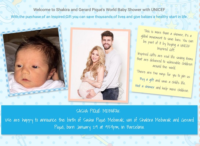 Shakira şi Gerard Pique sunt în al nouălea cer, după ce artista l-a adus pe lume pe cel de-al doilea băieţel al lor. Cei doi au vrut să împărtăşească aceste momente cu prietenii lor virtuali, cărora li l-au prezentat pe micuţul Sasha în cadrul evenimentului organizat de UNICEF, "Baby Shower".